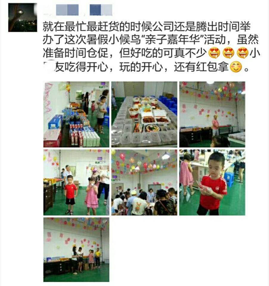 每年暑假的這個時候,正是制造企業一年當中最為繁忙的時候,適逢小候鳥們赴深與父母共聚歡樂時光的季節,雅香麗化妝用品(深圳)有限公司董事長林董認為,員工不只是家之棟梁,更是企業之根本,再忙,也要抽出時間來為員工舉辦一場有聲有色的親子嘉年華活動。此舉盡顯大企業家博愛風范!